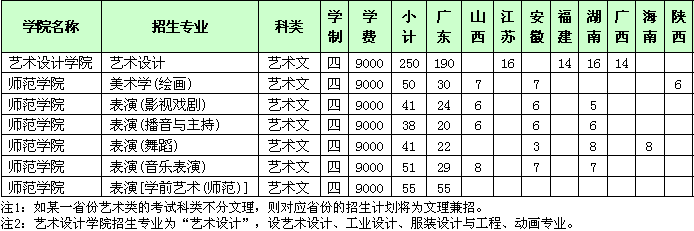 特别说明:新生进校后按大平台授课,前三个学期不分专业,学习公共课、基础课,第四学期开始,按学生志愿及有关专业要求确定专业,可供选择的专业有:艺术设计(设环境艺术设计、平面设计、创意策划与设计管理方向)、工业设计、服装设计与工程(设服装设计与工程、服装品牌策划与市场营销方向)、动画专业。