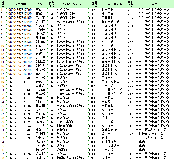 深圳大学2024年硕士研究生招生考试政策加分考生名单(不含加分后未过国家线)现予公布。如有遗漏或异议请于3月25日前联系我办。联系邮箱szuyz@szu.edu.cn。