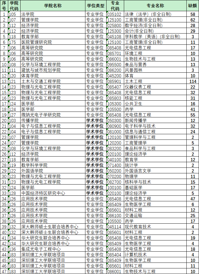 1.序号1-6为非全日制专业,序号34-47为联合培养专业,具体请查看招生专业目录。