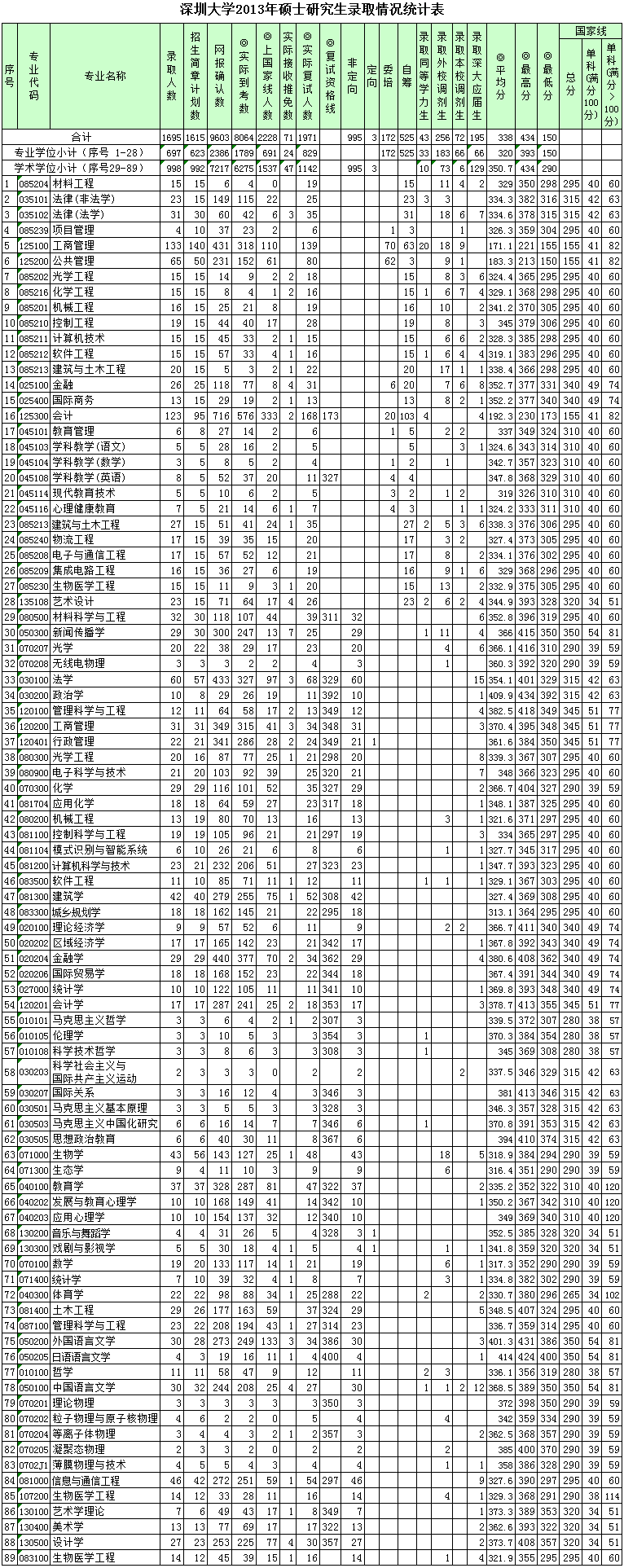 1、专业顺序按学位类型、招生学院代码排序。专业序号对应学院可查看https://zsb.szu.edu.cn/465.html