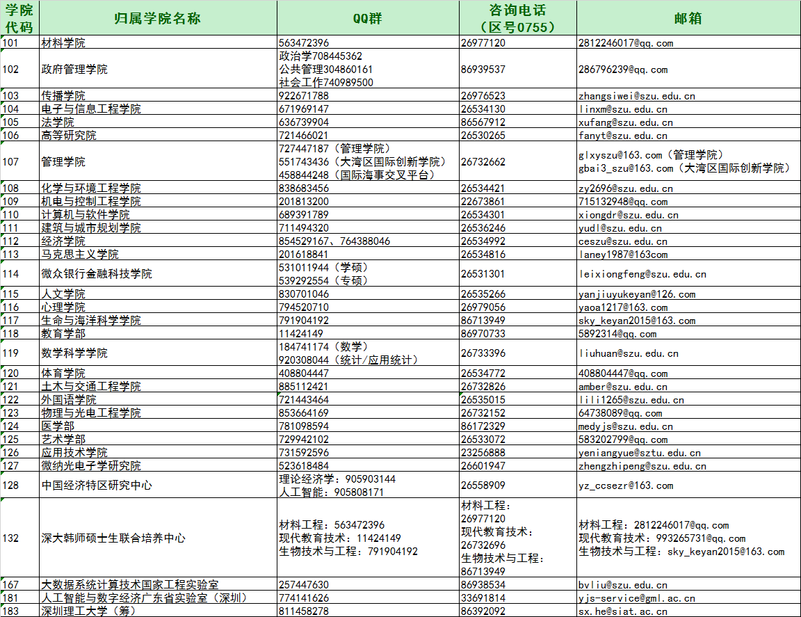 3、为便于各位获得推免资格并且有意推免到深圳大学的优秀学子找到组织,了解学院更多第一手招生资讯,现特此公布深圳大学各招生学院2024年推免生招生联系方式及QQ群。