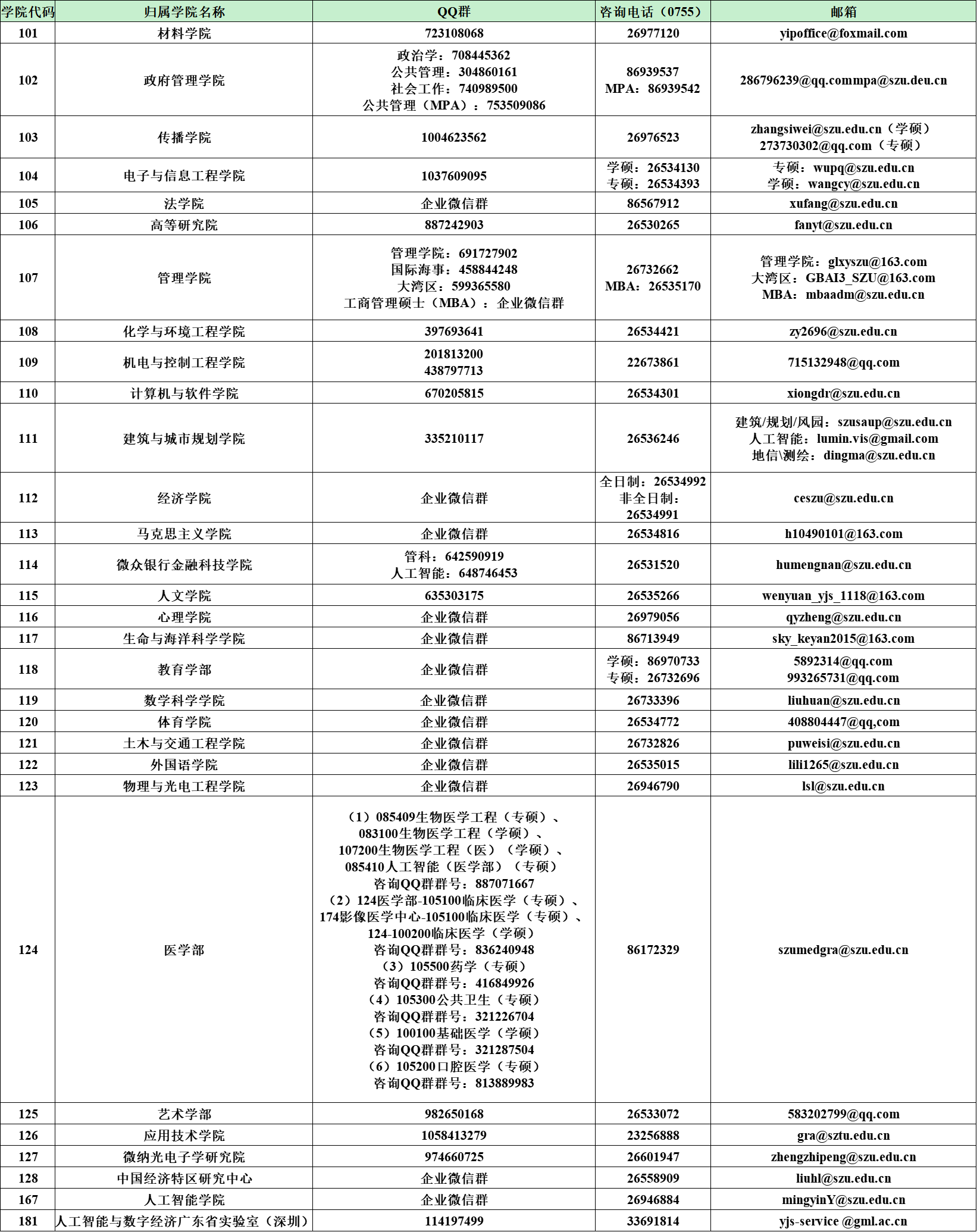2.为便于各位获得推免资格并且有意推免到深圳大学的优秀学子找到组织,了解学院更多第一手招生资讯,现特此公布深圳大学各招生学院2026年推免生招生联系方式及QQ群、企业微信群。